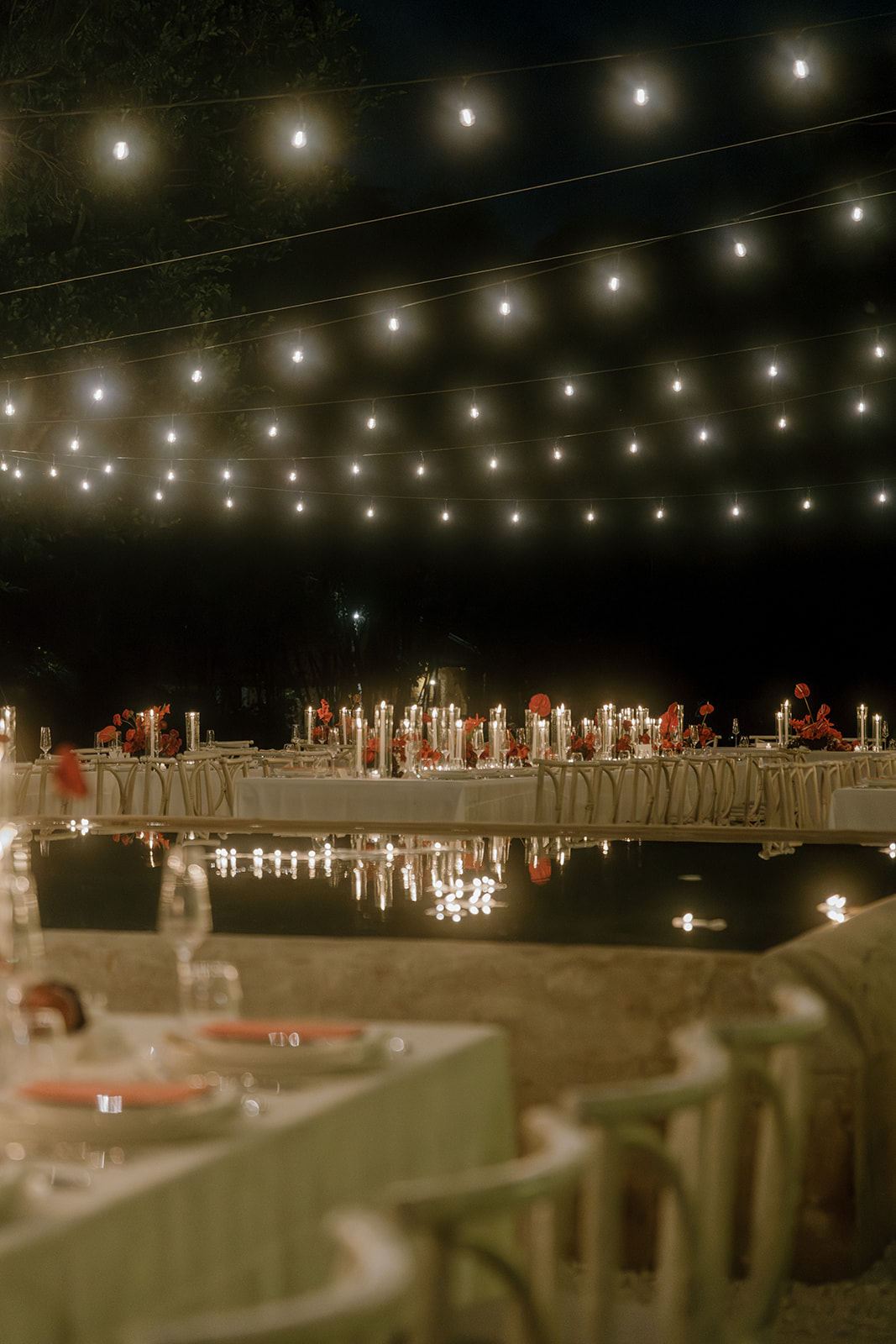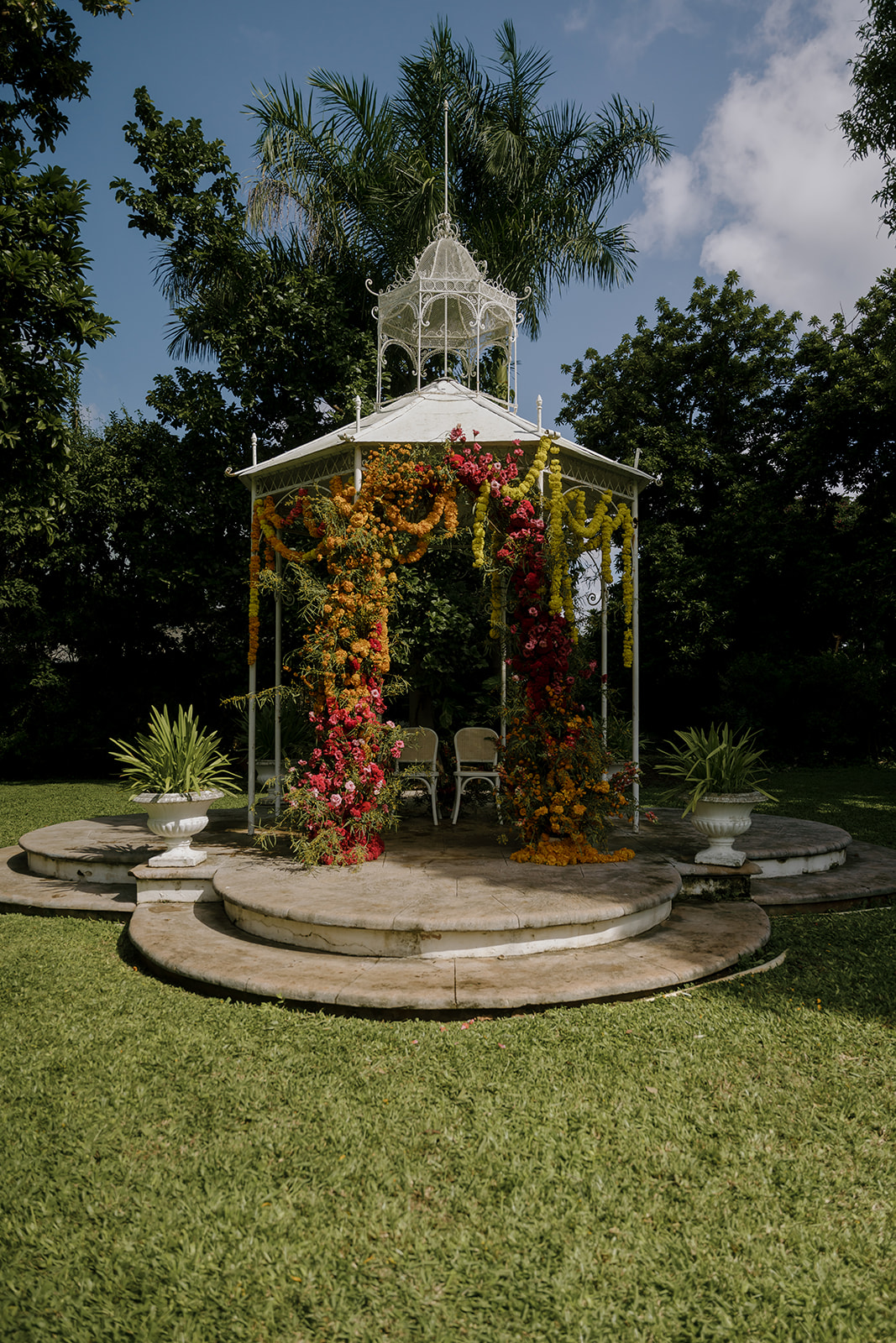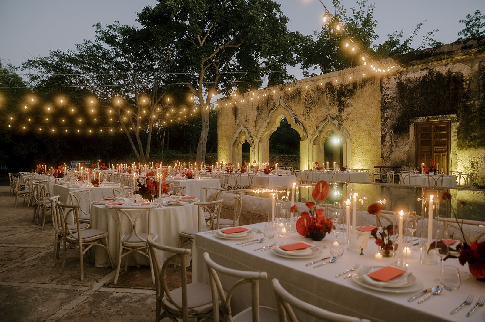 Una celebración rodeada de naturaleza, donde los jardines, las luces colgantes y los detalles florales crearon un ambiente mágico y profundamente acogedor. Cada espacio se transformó en un escenario vibrante que reflejó la esencia de la pareja: color, tradición y un encanto natural que envolvía cada momento.