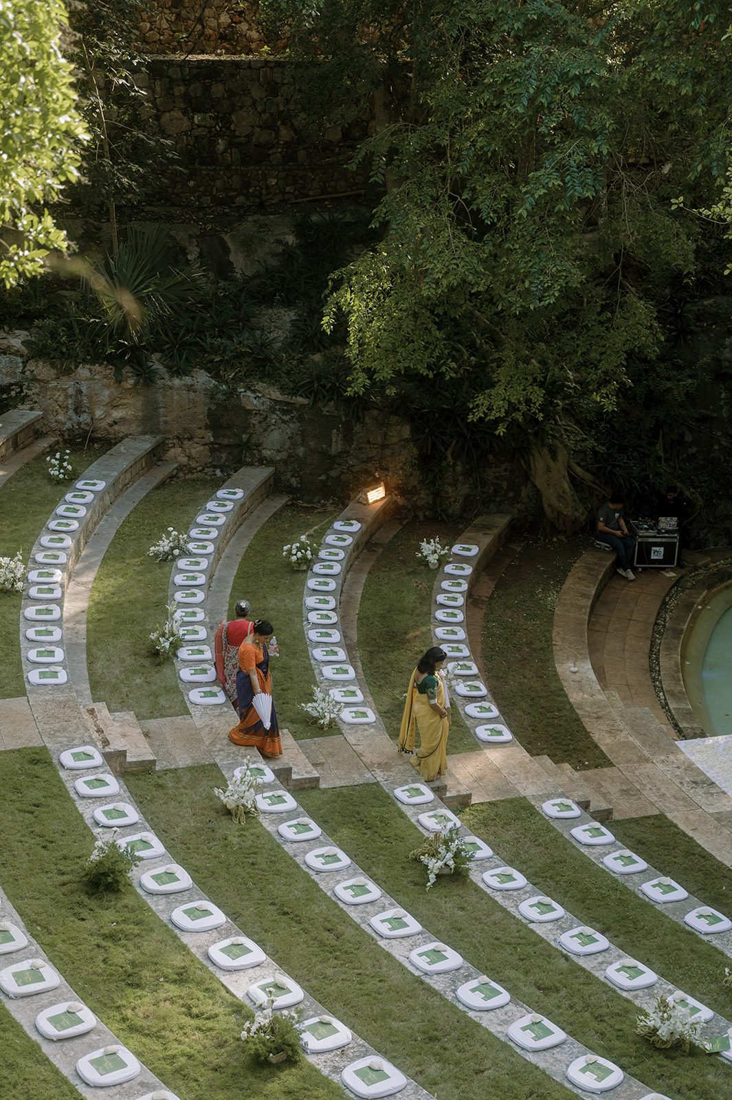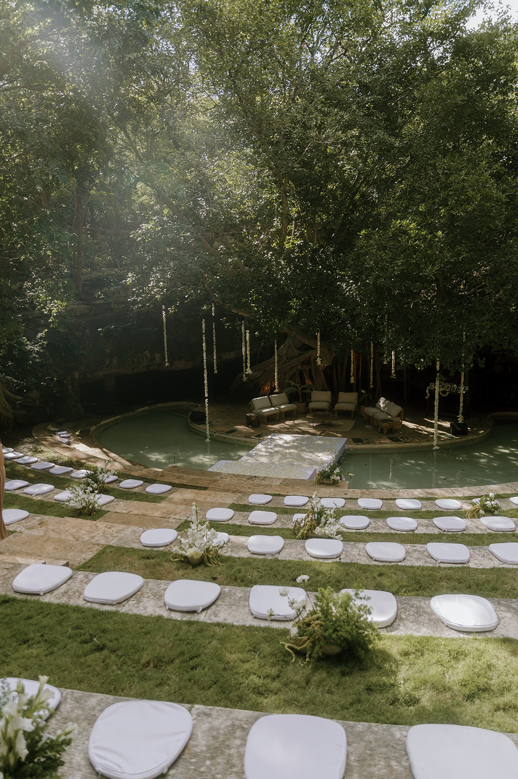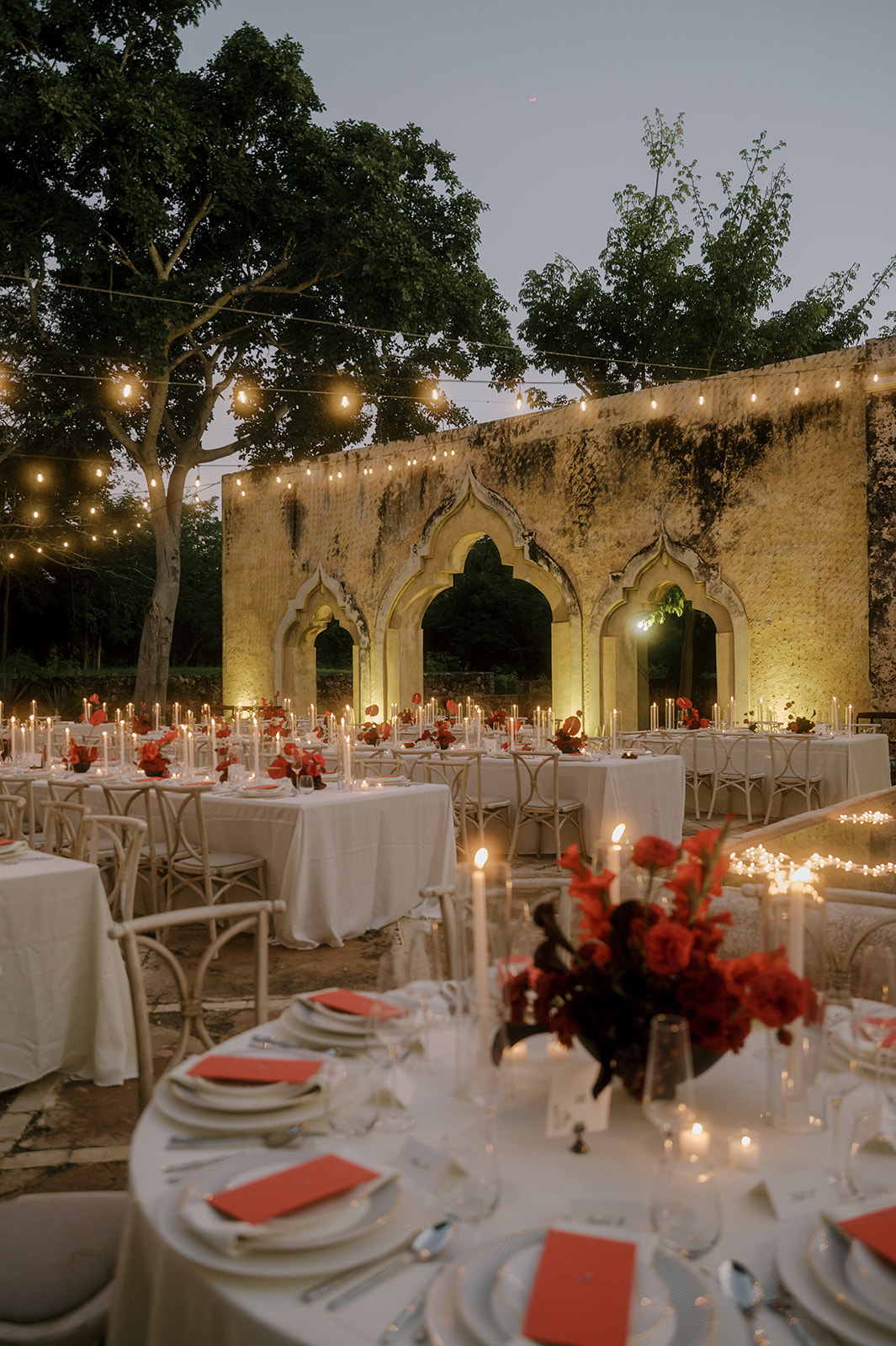 Una celebración rodeada de naturaleza, donde los jardines, las luces colgantes y los detalles florales crearon un ambiente mágico y profundamente acogedor. Cada espacio se transformó en un escenario vibrante que reflejó la esencia de la pareja: color, tradición y un encanto natural que envolvía cada momento.