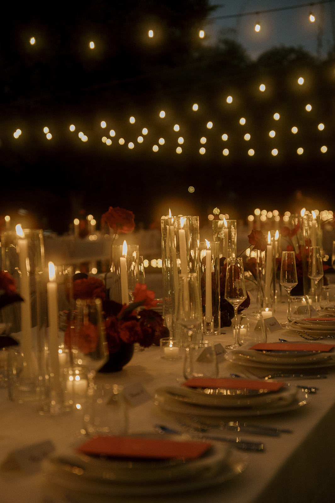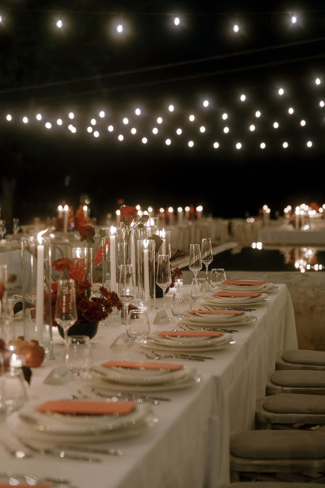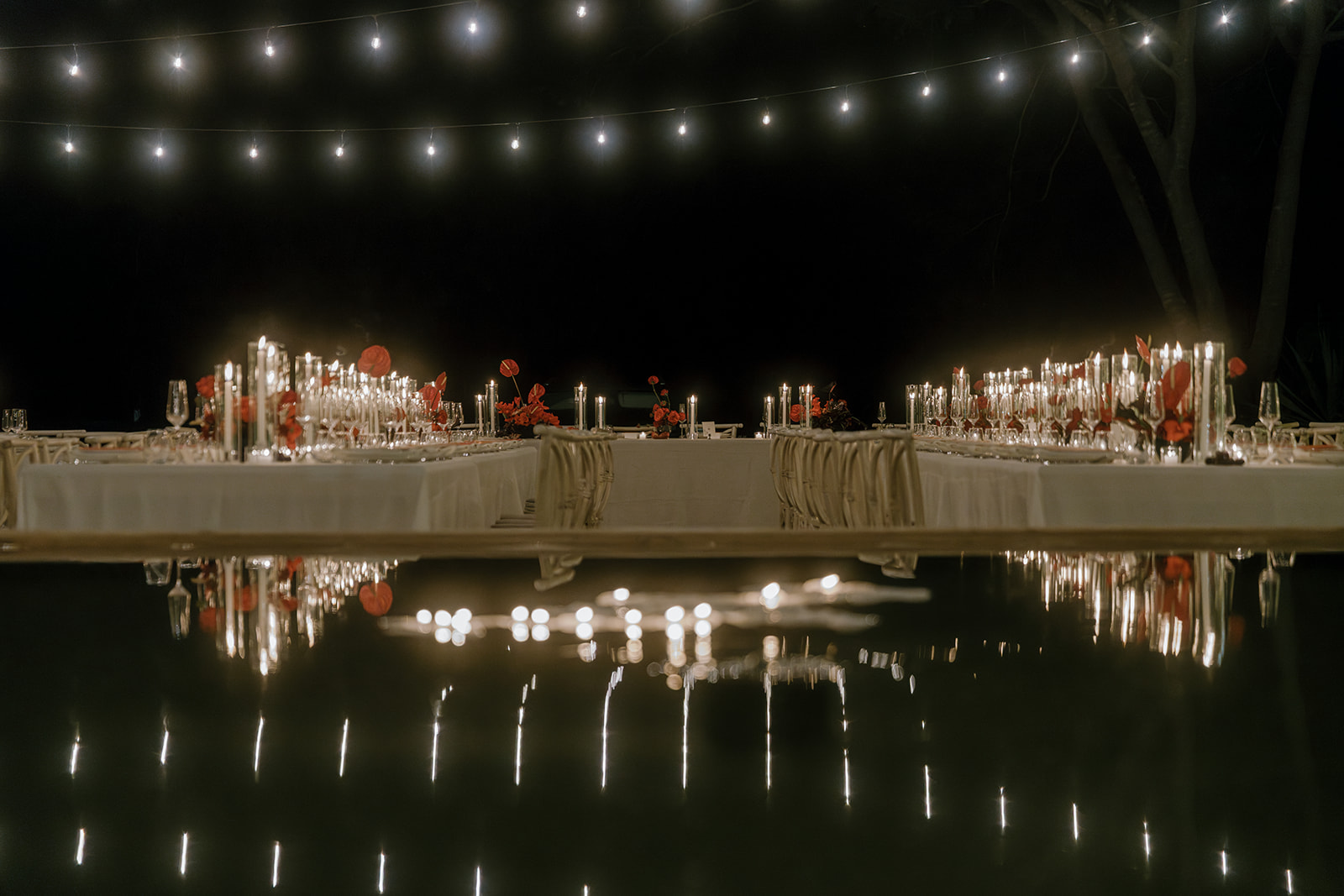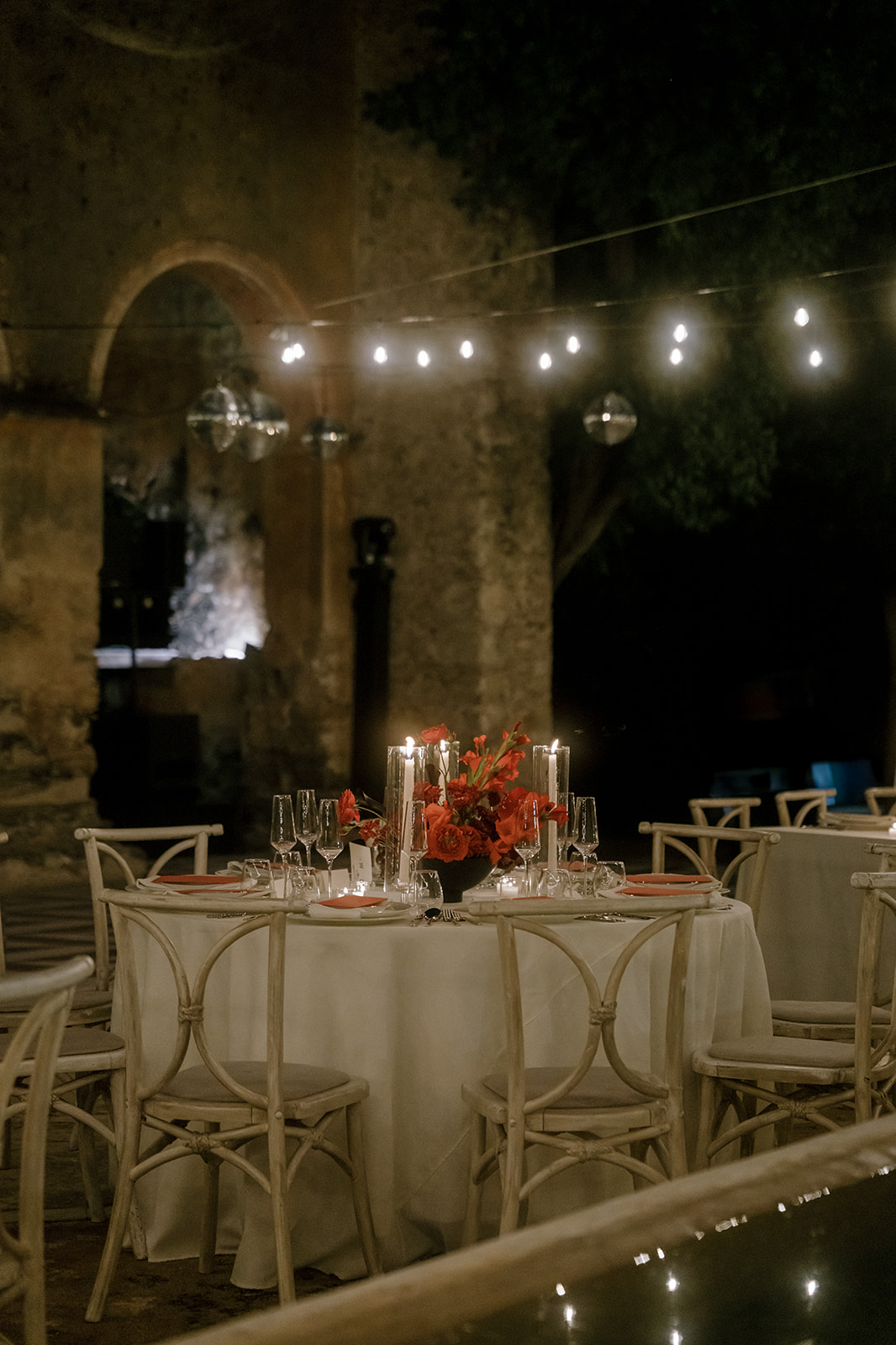 La noche avanzó entre mesas cálidas, velas, música y una energía festiva que unió a todos los invitados. Con una coordinación cuidada y discreta, aseguramos que cada etapa fluyera con suavidad, dejando que la pareja disfrutara de una experiencia auténtica y llena de vida.